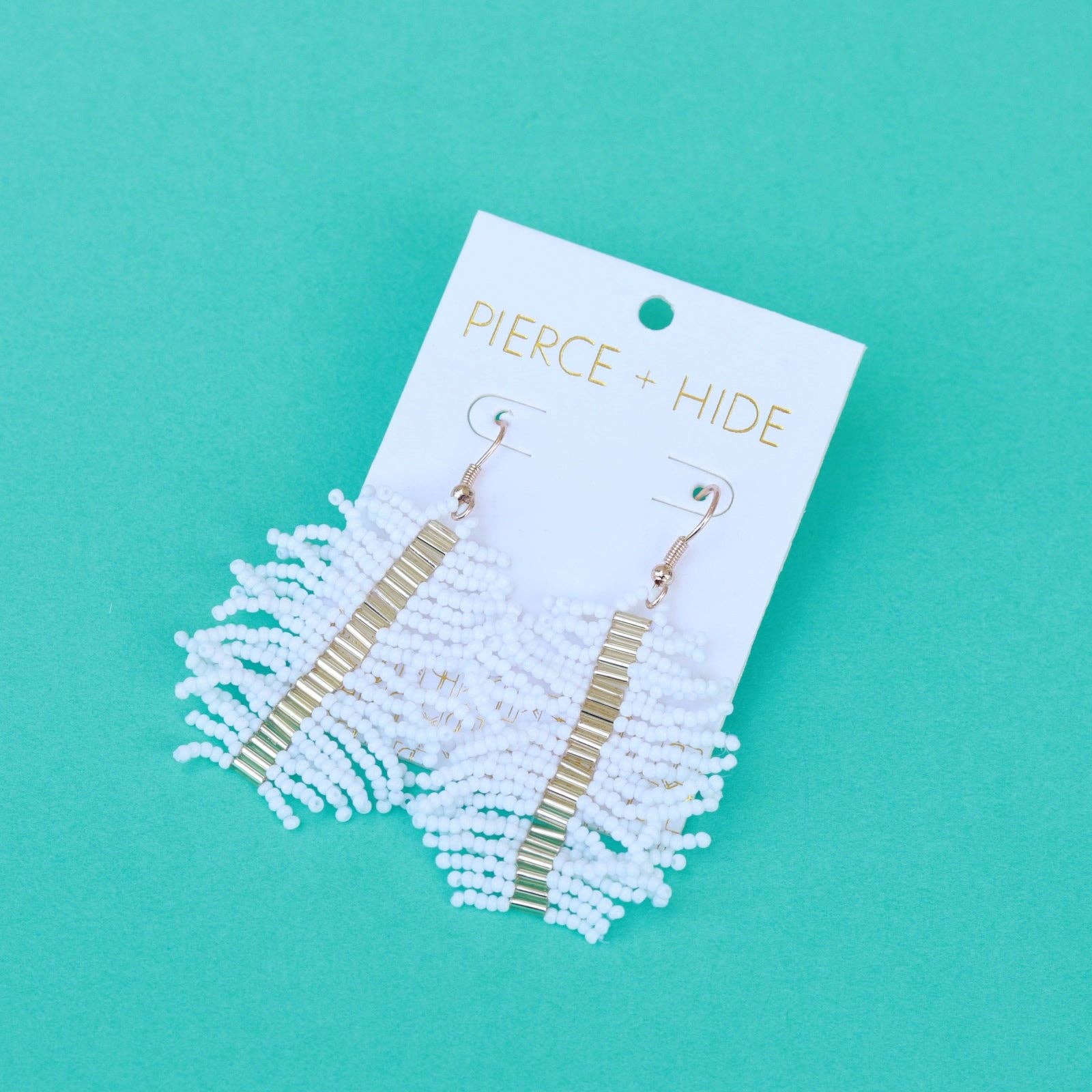 Pierce+Hide Custom White Beaded Palm Fringe Earring