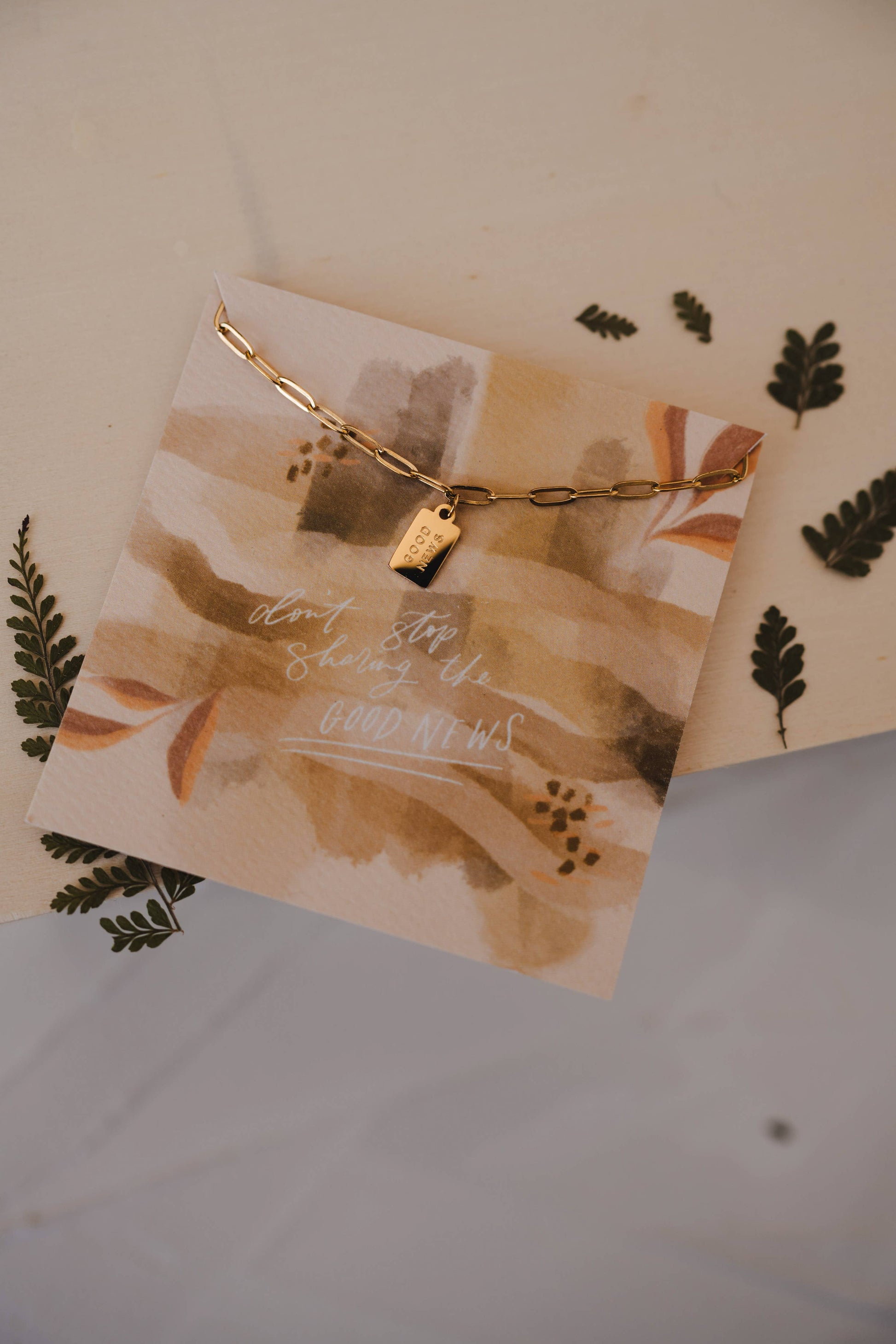 Displayed on a textured card featuring beautiful artwork by Lauren Ferguson of The Golden Designs. Full verse reference included on the back of the card.