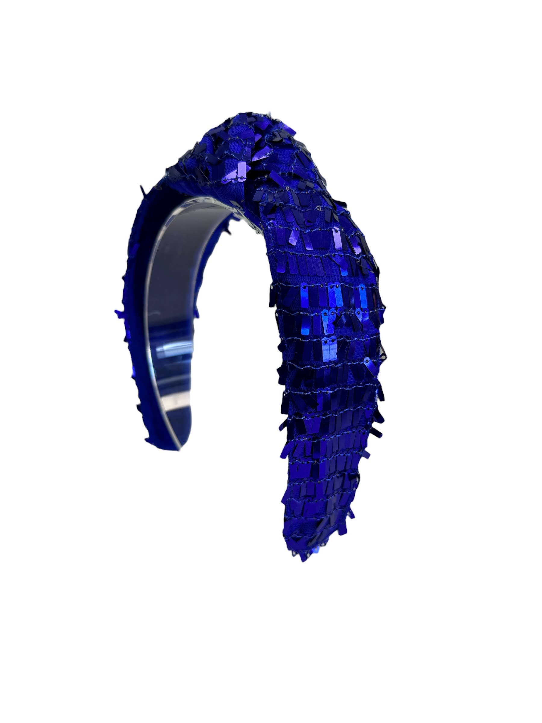 The Saria Headband showcases a refined knot design accented with shimmering sequins, expertly crafted to add a touch of elegance and sparkle to your ensemble.