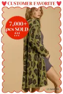 This green cardigan features a distinctive leopard print design, combining bold style with comfortable layering.