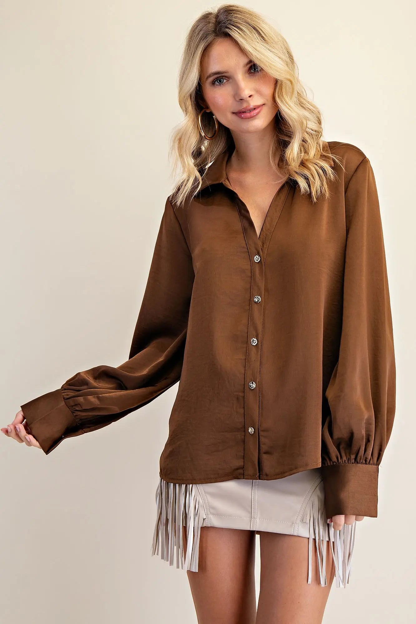 Elevate your wardrobe with the Jenny Top, featuring a sophisticated V-neck collar and a classic button-down front. Crafted for a polished look, this shirt combines professional style with comfortable wearability. Its tailored design ensures a flattering fit, making it ideal for both office settings and stylish casual outings.