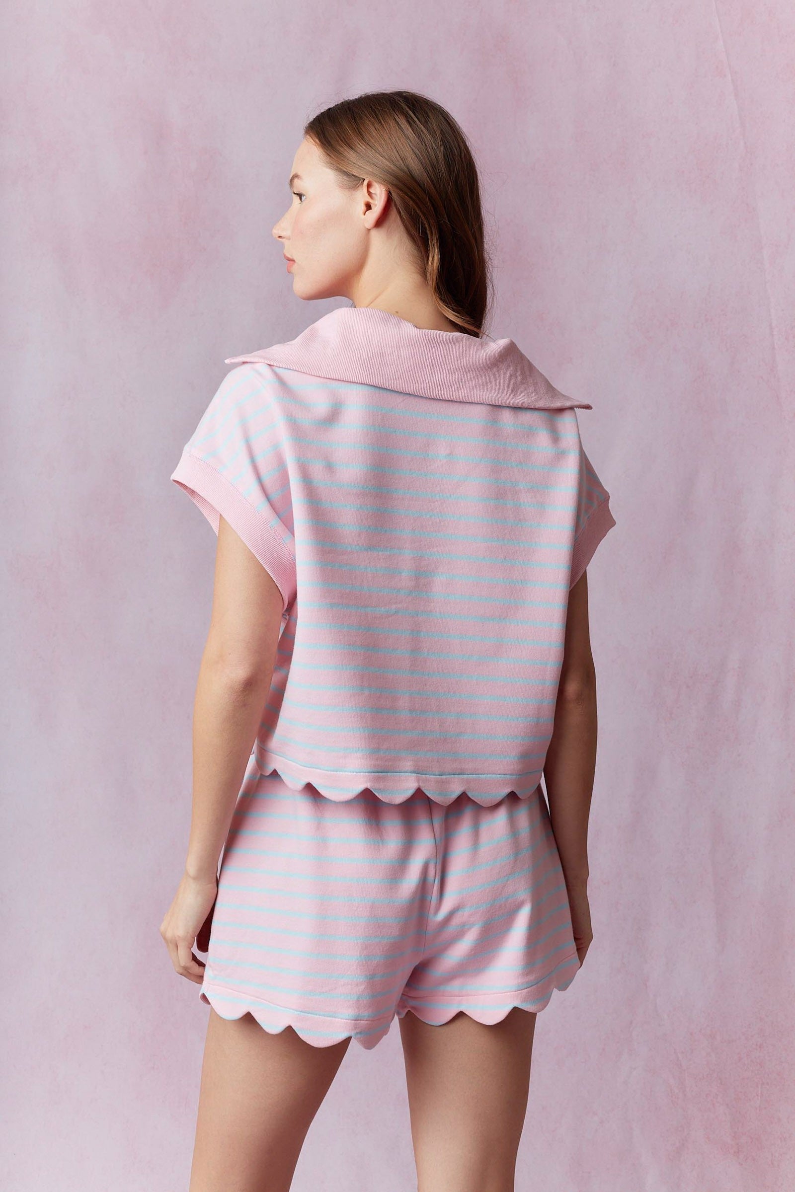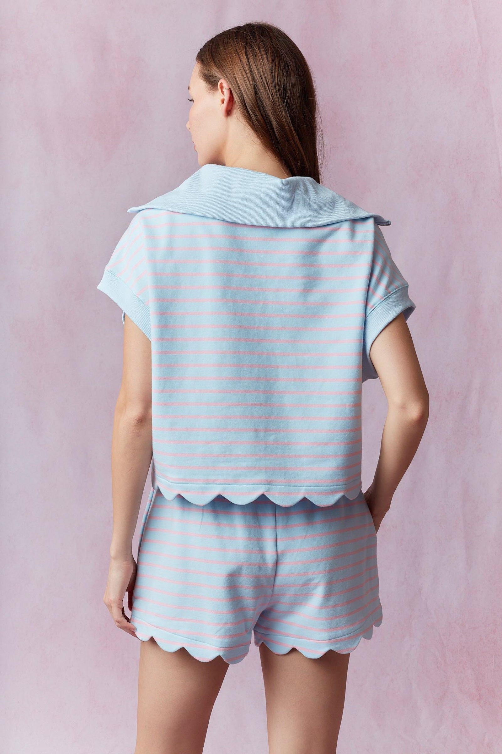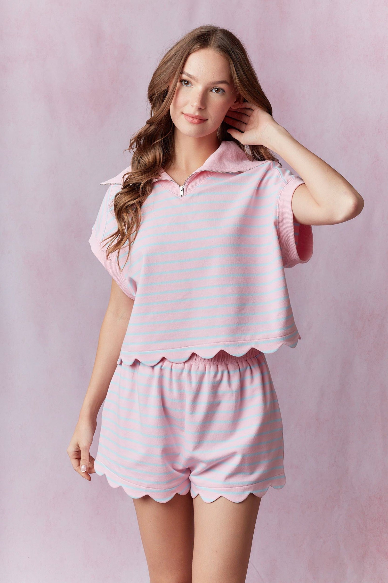 French Terry Scallop Hem Dolman Sleeve Top with matching shorts