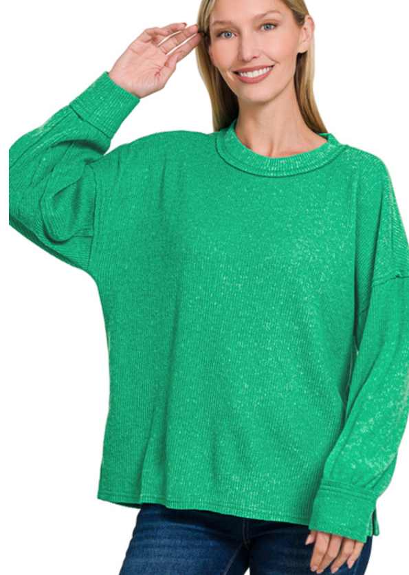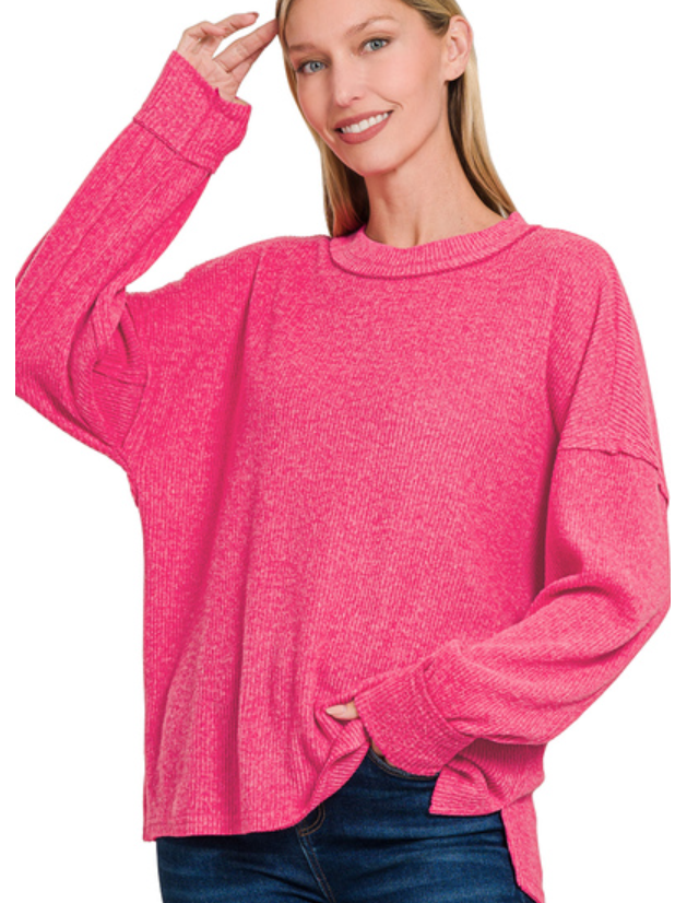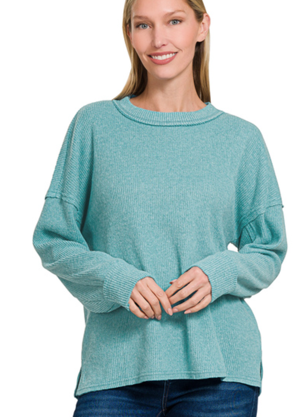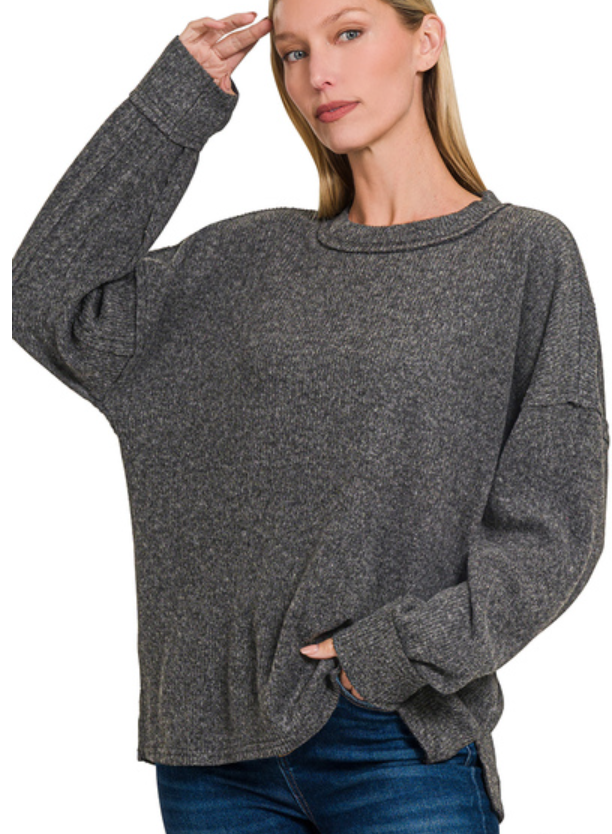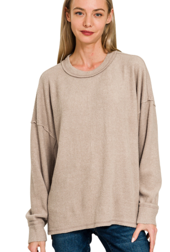 BRUSHED RIBBED EXPOSED SEAM DROP SHOULDER SWEATER