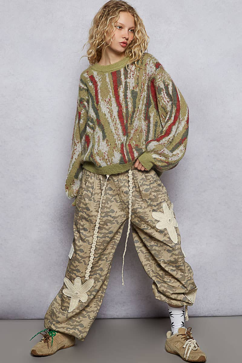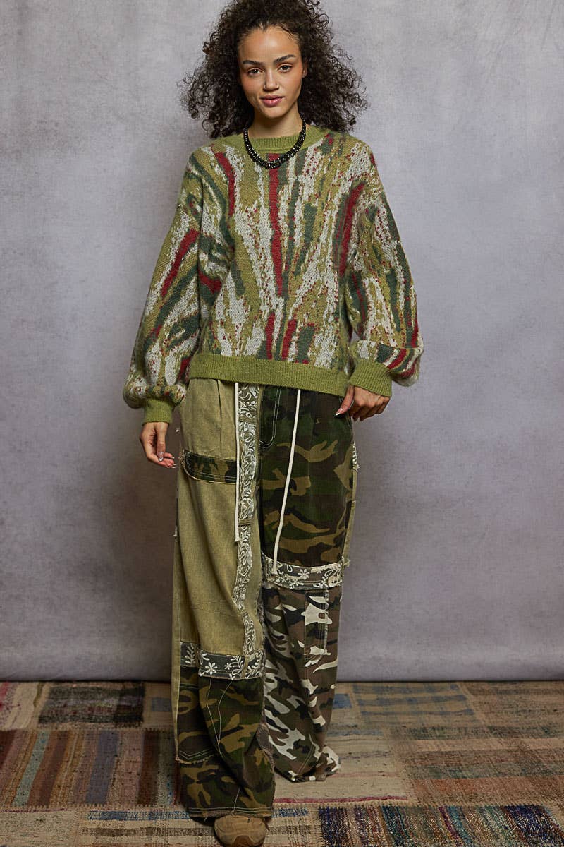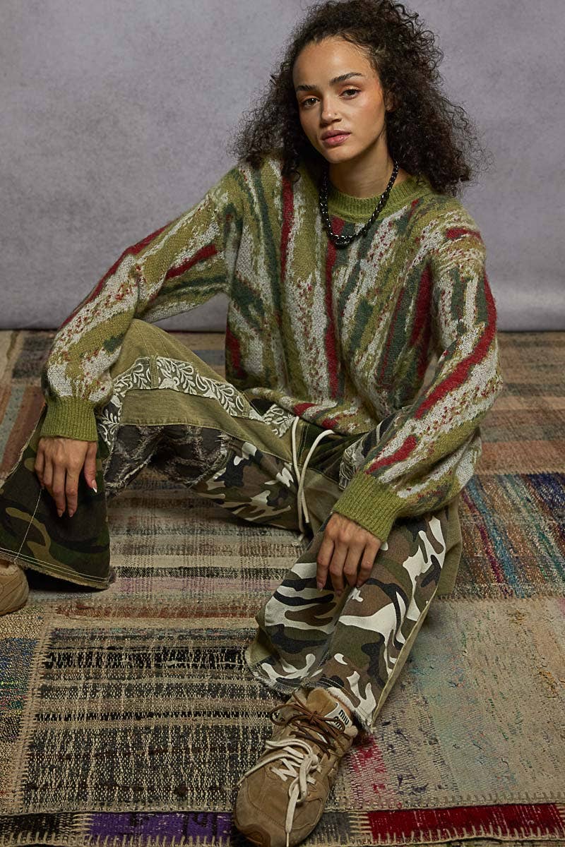 This oversized crewneck sweater delivers effortless style with its striking abstract colorway and relaxed silhouette. Crafted from soft acrylic with reinforced ribbed trim at the cuffs and hem, it's designed for comfort without compromise. The generous 23" bust and 23.5" length create that coveted roomy fit perfect for layering or wearing solo.