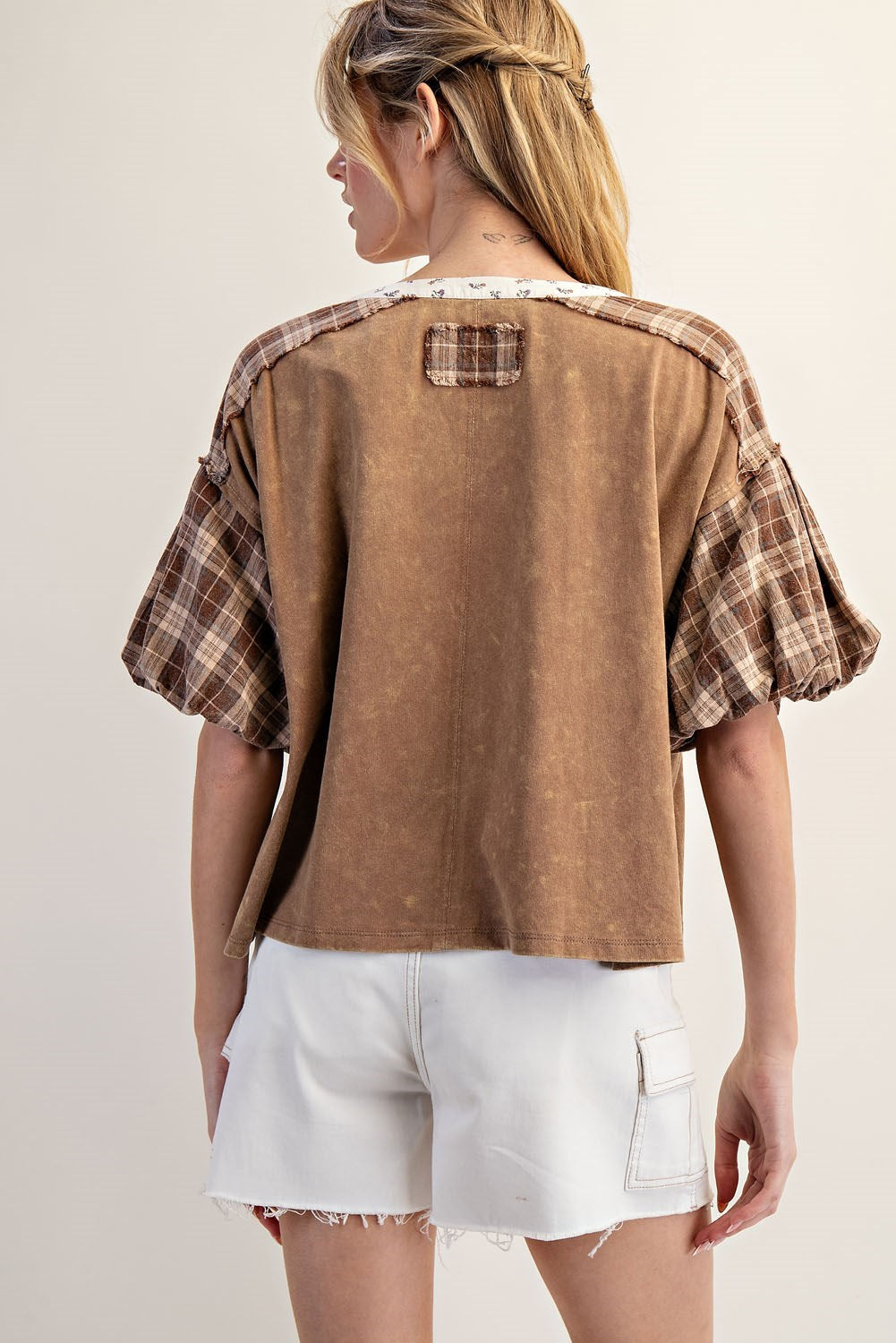 Elevate your wardrobe with the Mineral Washed Plaid Puff Sleeve Top, expertly crafted for a refined yet relaxed look. The mineral wash technique enhances softness and adds subtle vintage character, while the puff sleeves introduce a sophisticated silhouette. Perfect for layering or wearing alone, this top balances classic plaid patterning with contemporary design, offering versatile style for both casual and polished outfits.