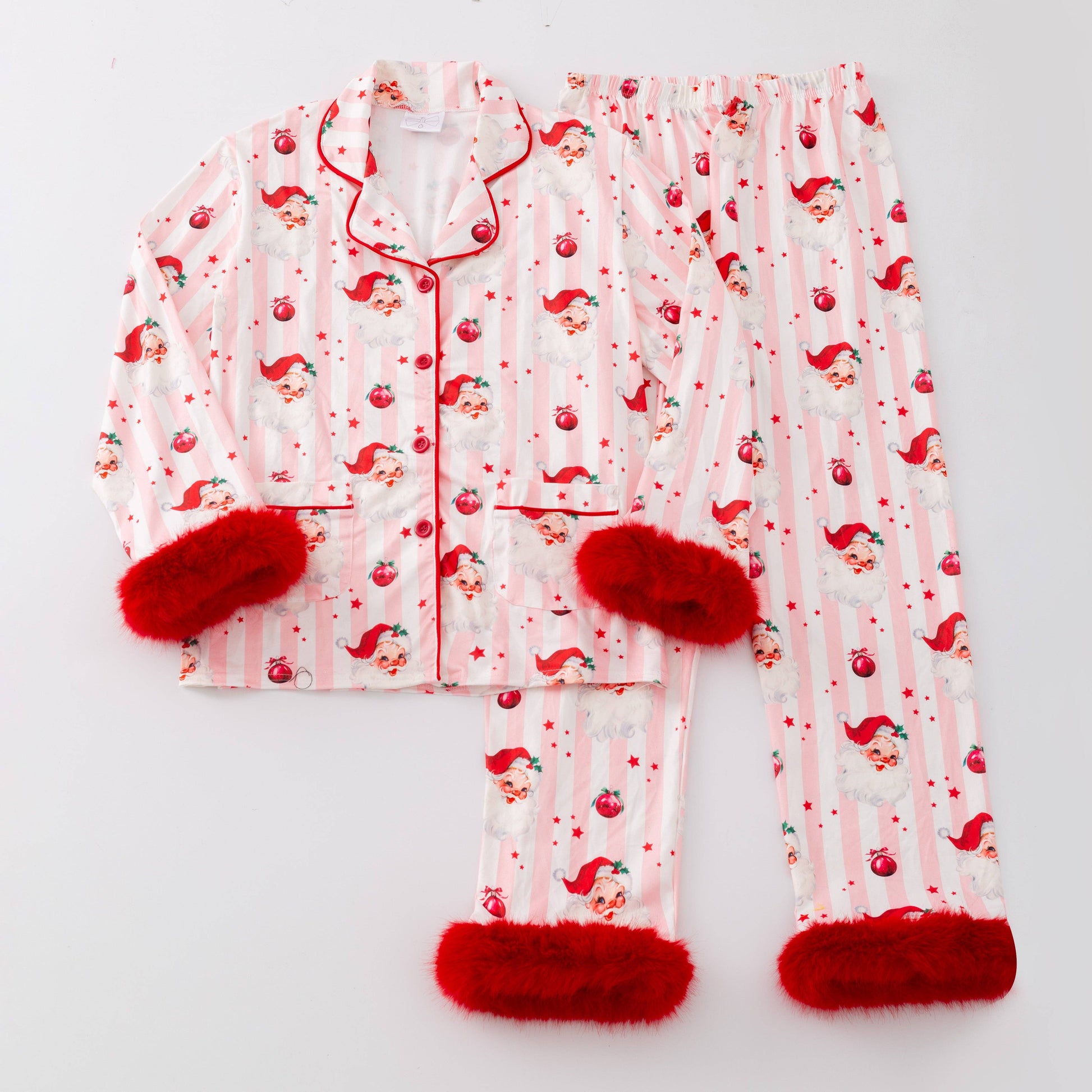Mommy & Me Santa & Stripes Fuzzy Trim PJ's