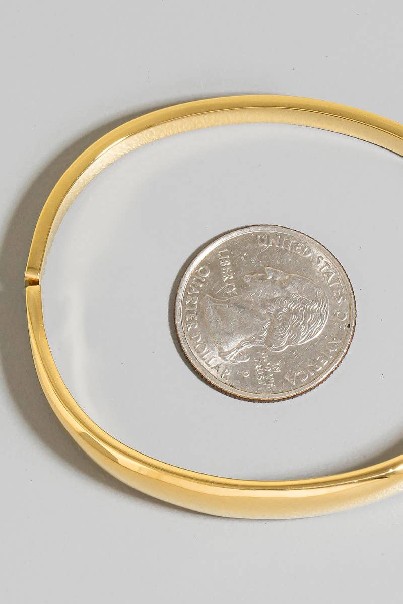 This bangle bracelet displays a fashionable stainless steel modern hinge style. Unveil a new dimension of sophistication as this bangle bracelet effortlessly enhances the elegance of your ensemble.
