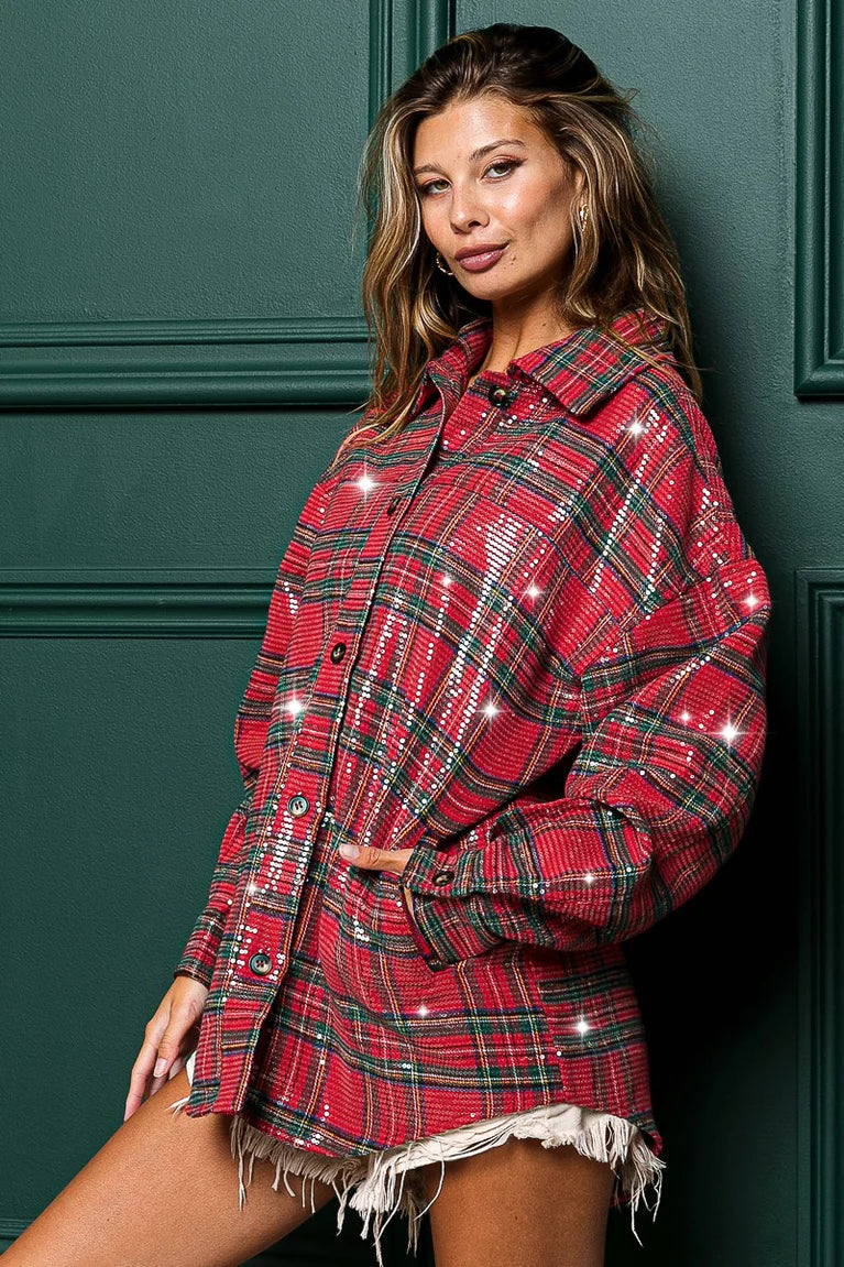 Elevate your holiday wardrobe with this striking vintage plaid Christmas shirt, enhanced by shimmering clear sequins that catch the light beautifully. The classic plaid pattern delivers timeless appeal, while the sequin detailing adds contemporary glamour and festive sparkle. Perfect for seasonal celebrations, casual gatherings, or anyone seeking a statement piece that balances retro charm with modern embellishment. This versatile shirt transitions effortlessly from holiday parties to everyday wear.