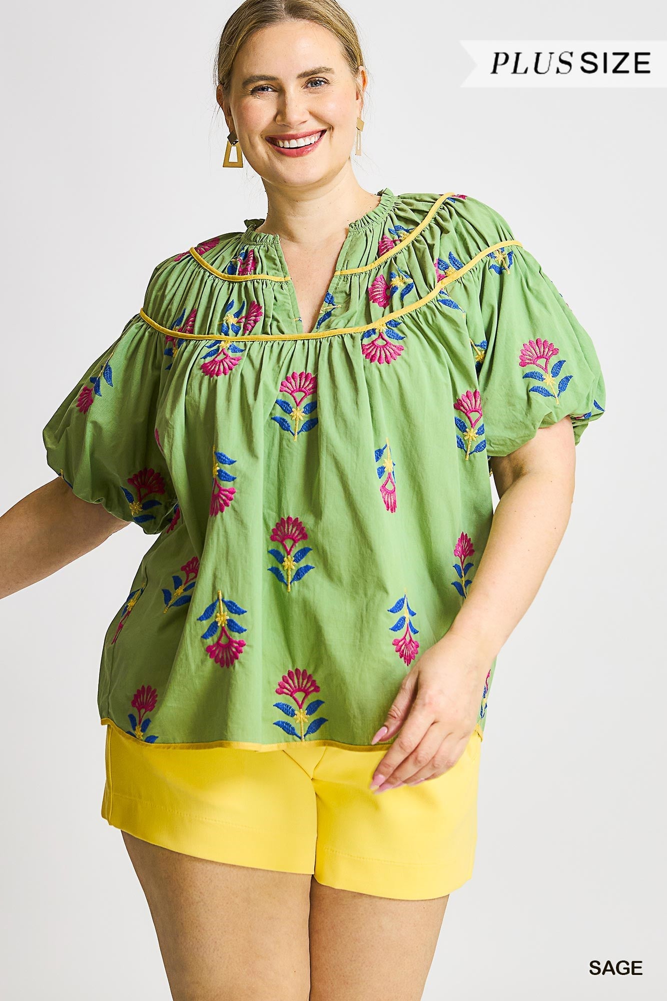 Umgee Curvy Meadow Bloom Embroidered Top