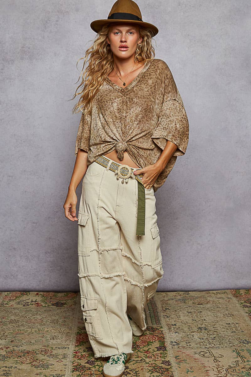Designed in V-neck short sleeve roomy fit top in printed POL-jersey with vintage wash detailing.